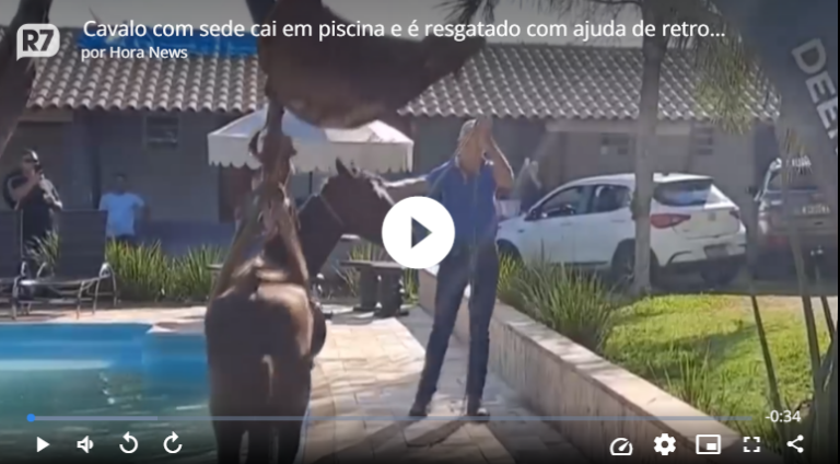 Um cavalo escorregou para dentro da piscina ao tentar beber água em uma residência na cidade de Dois Córregos, interior de São Paulo, no domingo (5).